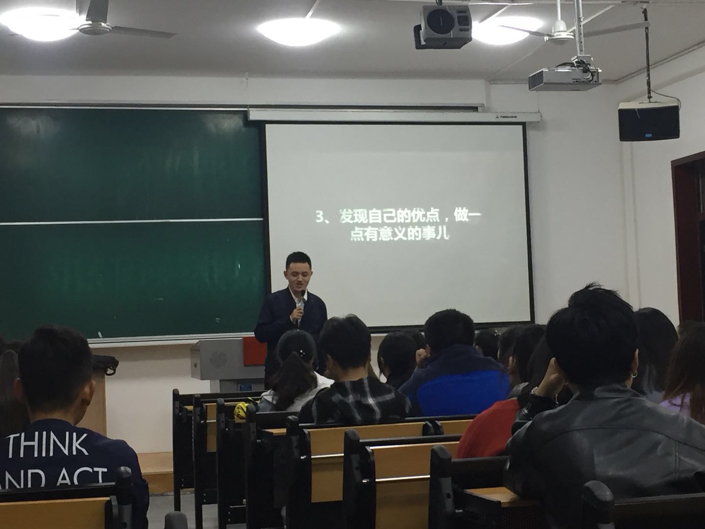 最后,张晓宾谈了与2014级一同走过四年的感想,并通过聆听刘康分享鼓励同学们:激发潜能、学会自我管理并不断努力,为自己四年的老员工活写下浓墨重彩的一笔。