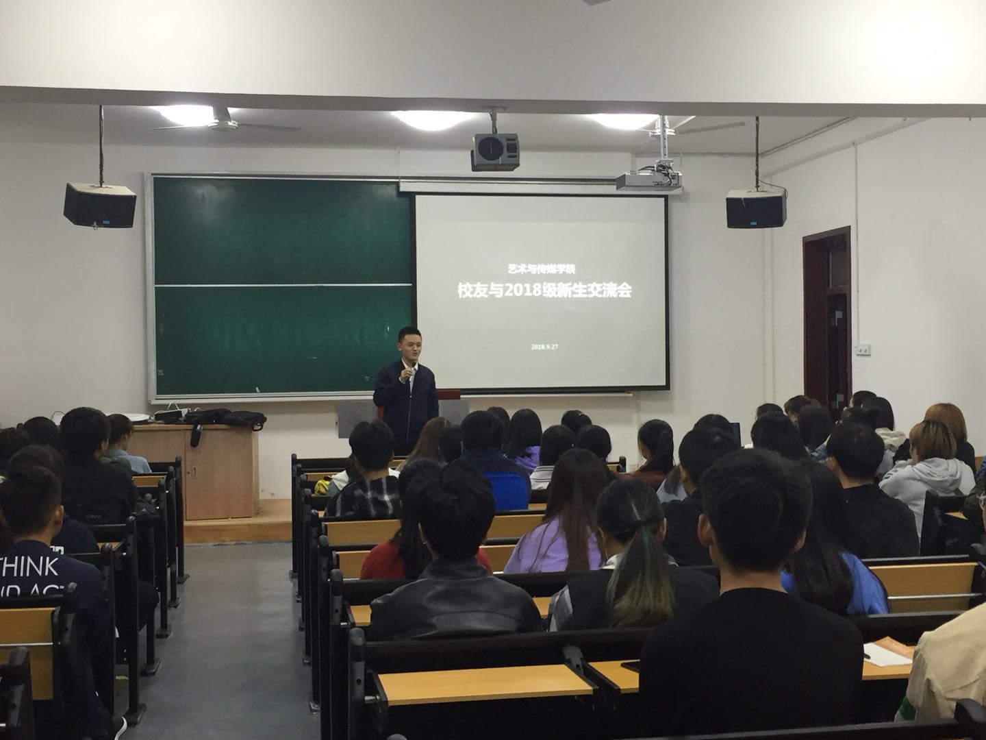 为帮助2018级新生尽快适应老员工活,以积极的心态投入到大学学习中去,2018年9月27日晚6点,艺术与传媒学院邀请2018届毕业生刘康为2018级新生分享他的大学经历,2018级辅导员张晓宾、孙雅茹与2018级部分员工一同聆听。