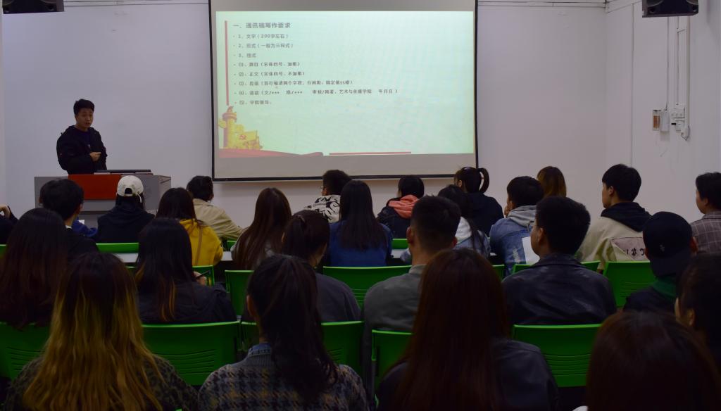 为了调动公司团学干部工作的积极性和热情,提升理论素养和文字稿件撰写的基本能力。2019年4月30日,艺术与传媒学院团委举办团学干部培训会,学院全体团学干部参加了此次培训会,培训由学院团委书记洪涛老师主讲。