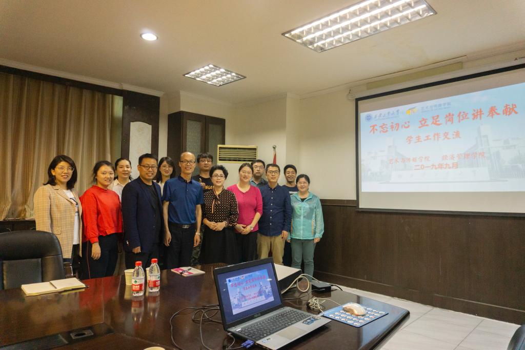 程新峰副书记首先感谢艺术与传媒学院提供了这次辅导员工作交流的机会,希望通过两个学院辅导员之间的相互交流,学习并借鉴艺术学院在员工工作方面好的做法,促进经管学院员工工作不断向前发展。