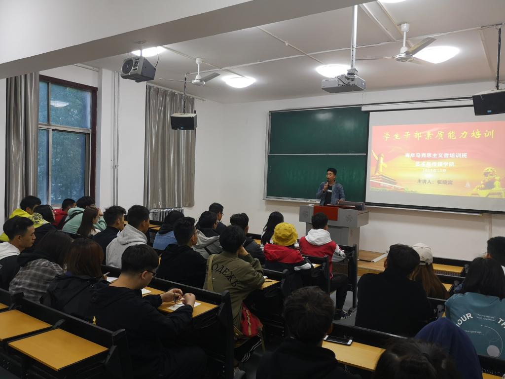 2019年10月23日,艺术与传媒学院第二十四期青年马克思主义者培训班正式开讲,第一讲由辅导员组长张晓宾以“理想信念教育”为主题开讲,2019级各班班长、团支书及主要团学干部参加培训。