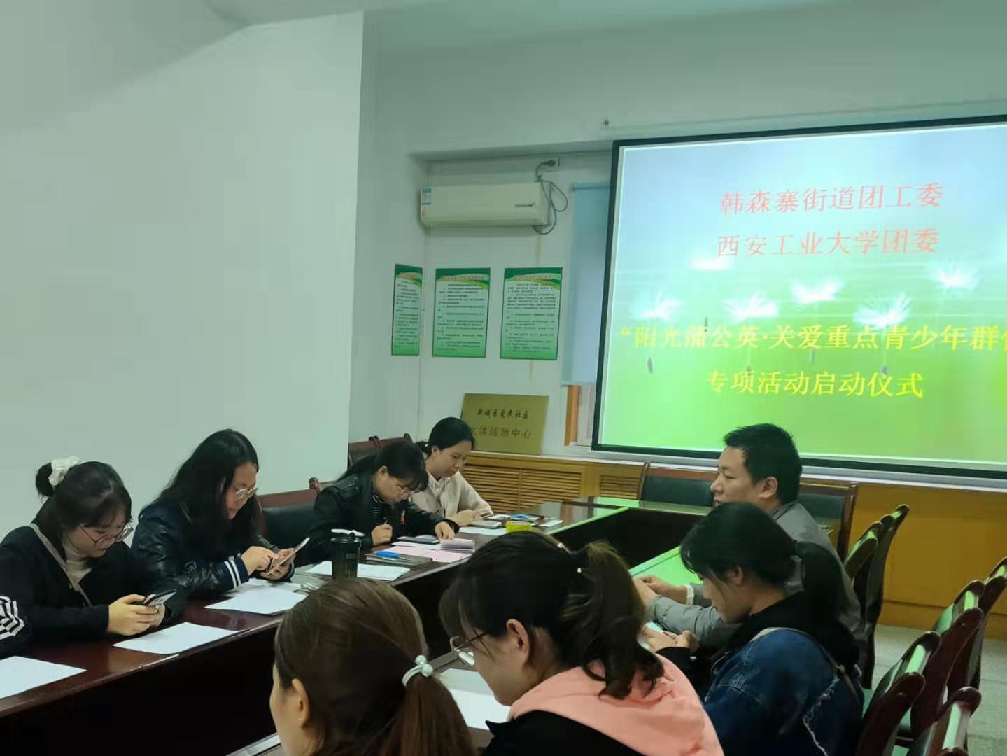 20191025日,艺术与传媒学院志愿者服务站全体志愿者在站长董梦瑶、副站长杜敏的带领下于当日下午三点,在韩森寨街道办开展关爱青少年志愿服务活动。