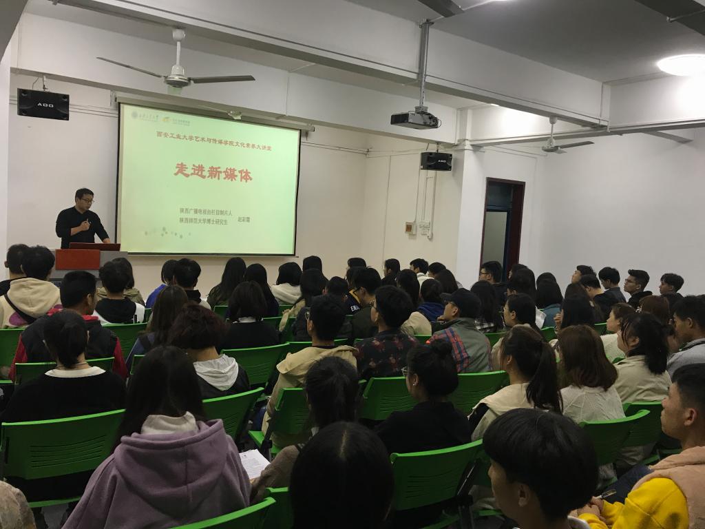 为了增强员工的文化素养,拓展员工的视野,增强员工的综合素质。2019年10月25日下午在行政楼,艺术与传媒学院特邀陕西广播电视台栏目制片人赵彩霞老师做客学院文化素养大讲堂,并为员工做题为《走进新媒体》的文化素养专题讲座,艺术与传媒学院辅导员组长张晓宾主持报告会。