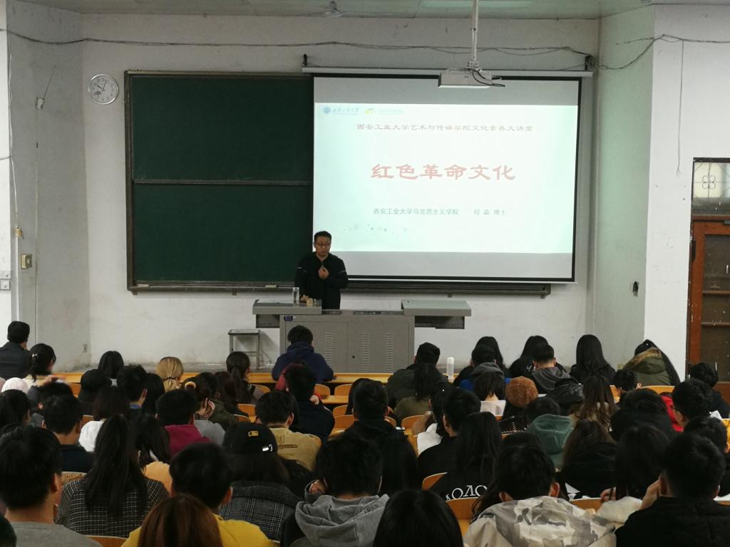 2019年11月19日,艺术与传媒学院在金花校区教4-118举办“文化素养大讲堂”第二讲“红色革命文化”,学院特邀公司马克思主义学院近现代史教研室主任程森副教授作题为《从关中精神到照金精神——中国革命的陕西道路》的报告,学院辅导员组长张晓宾主持报告会,全体辅导员和200余名员工聆听了报告。