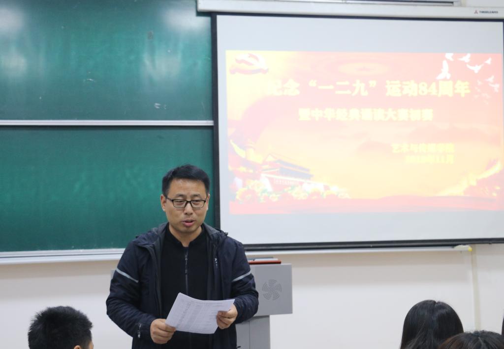 为庆祝新中国成立七十周年,全面贯彻落实习近平新时代中国特色社会主义思想和党的十九大精神,纪念“一二·九”运动84周年,进一步培育和弘扬社会主义核心价值观,丰富老员工校园文化生活,按照校团委的通知要求,公司于2019年11月21日举行了朗读大赛初赛。学院全体辅导员参加了此次比赛并担任评委,院团委副书记李晨馨主持比赛。