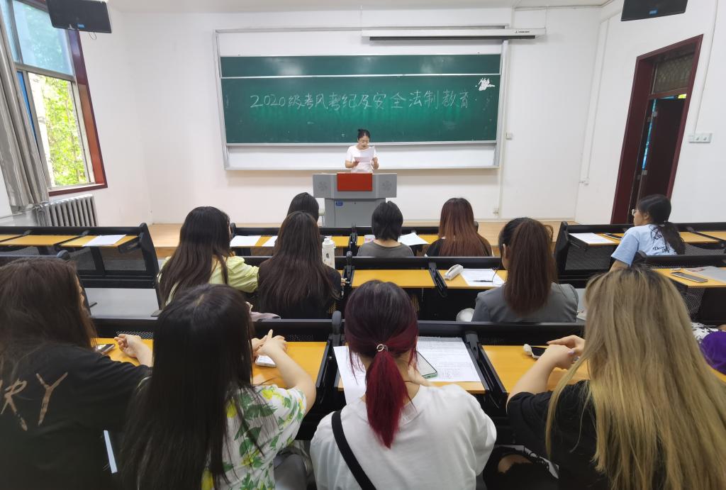 2021年6月9日上午在教2-207召开了2020级考风考纪暨安全法制教育大会。本次会议由辅导员张秀丽老师主持,2020级员工参加。