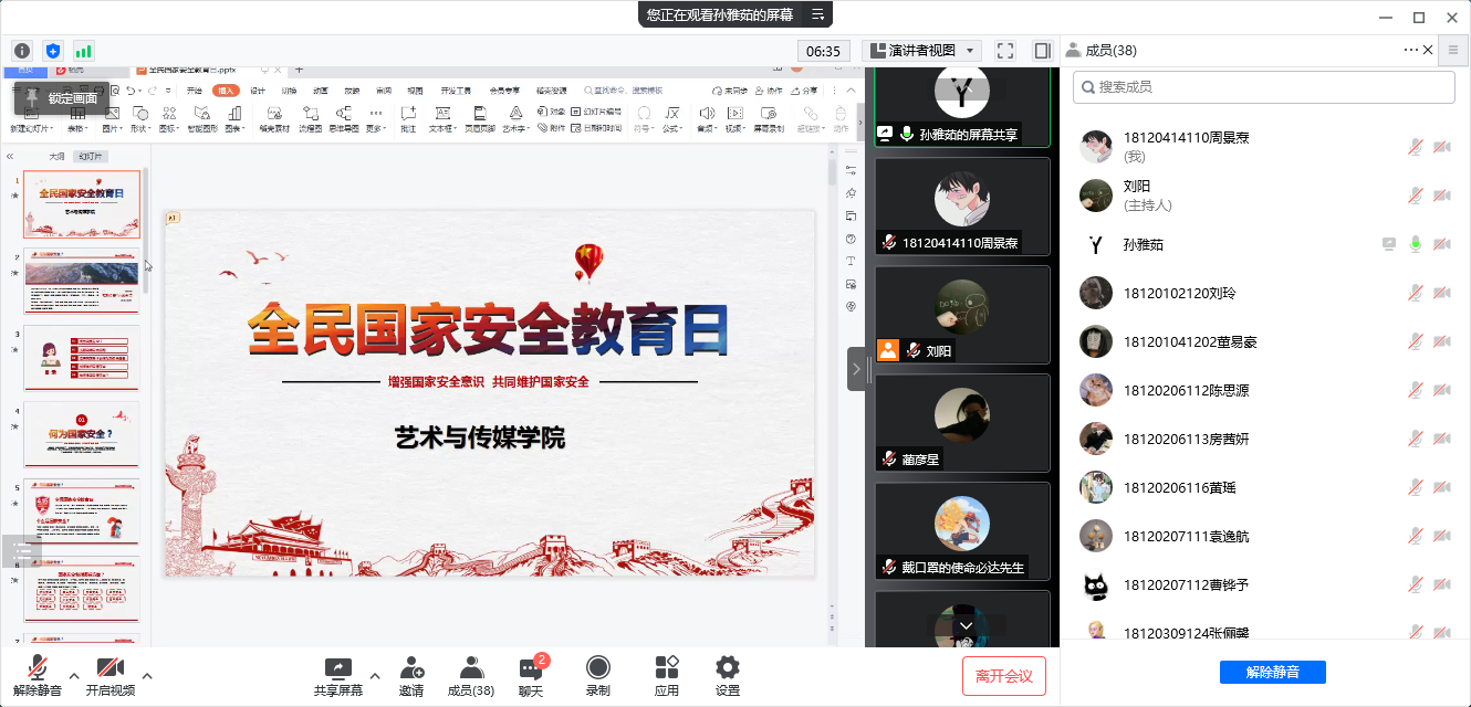 活动中各年级分别采取线上线下的形式对《中华人民共和国国家安全法》相关内容进行学习,内容包括国家安全基本内容、公民维护国家安全的义务、如何参与维护国家安全、谁来保卫国家安全等方面。同时通过动漫视频观看的形式,鼓励员工参与学习与讨论,使国家安全知识深入人心。学院倡议全院员工提高政治站位、增强依法防控意识、加强法治宣传,在学习和生活中,时刻紧绷安全意识这根弦,进一步维护国家安全和政治稳定,筑牢国家安全人民防线,为社会的和谐发展作出应有的贡献。