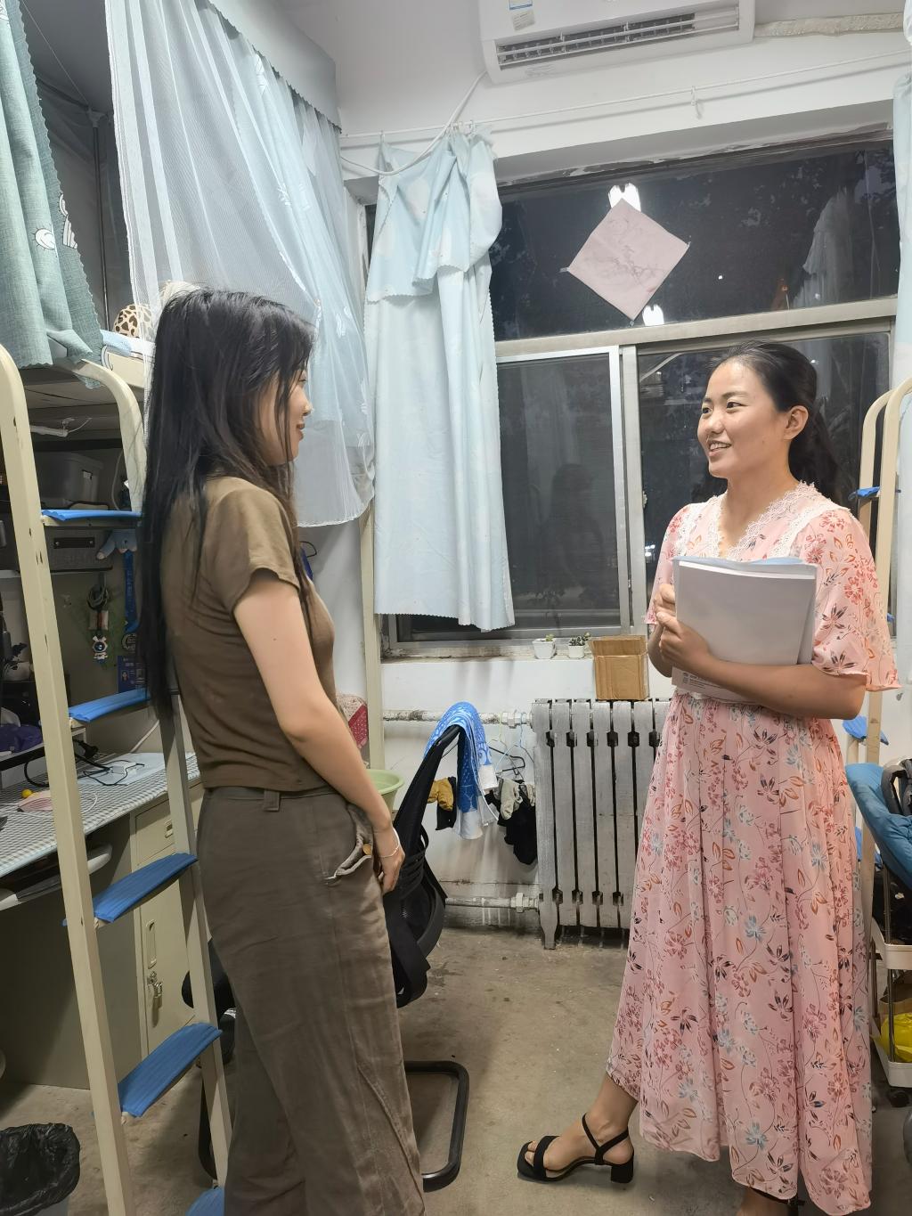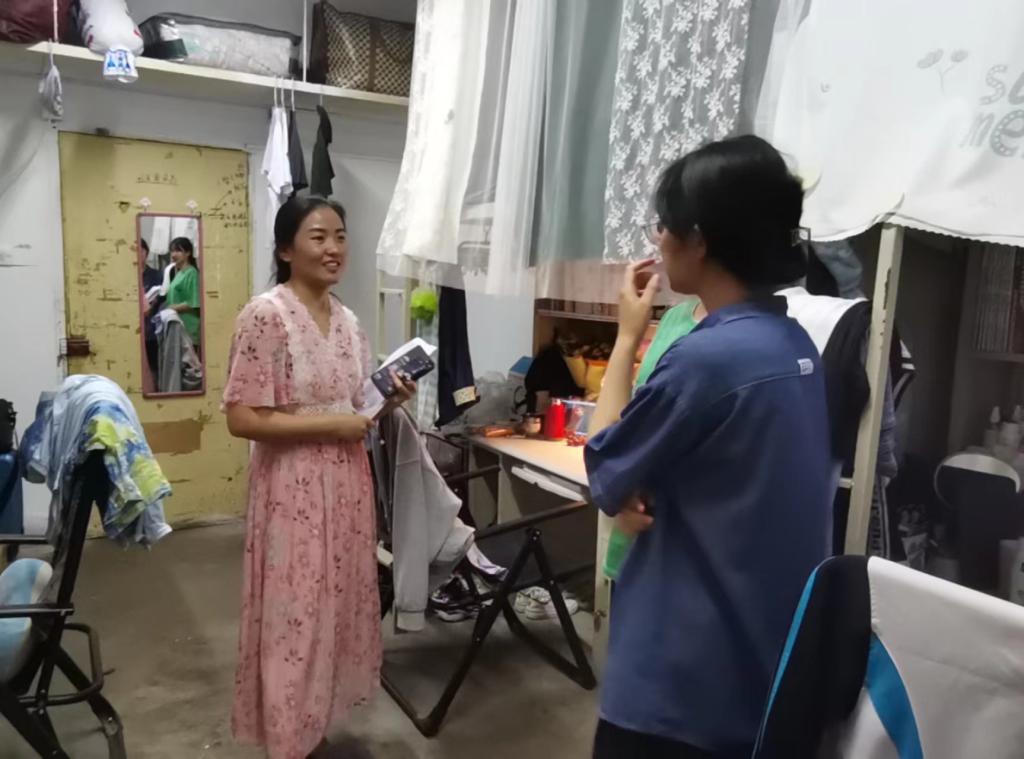 会议结束后,董丹丹走进员工宿舍进行走访排查,时刻关注员工思想动态。