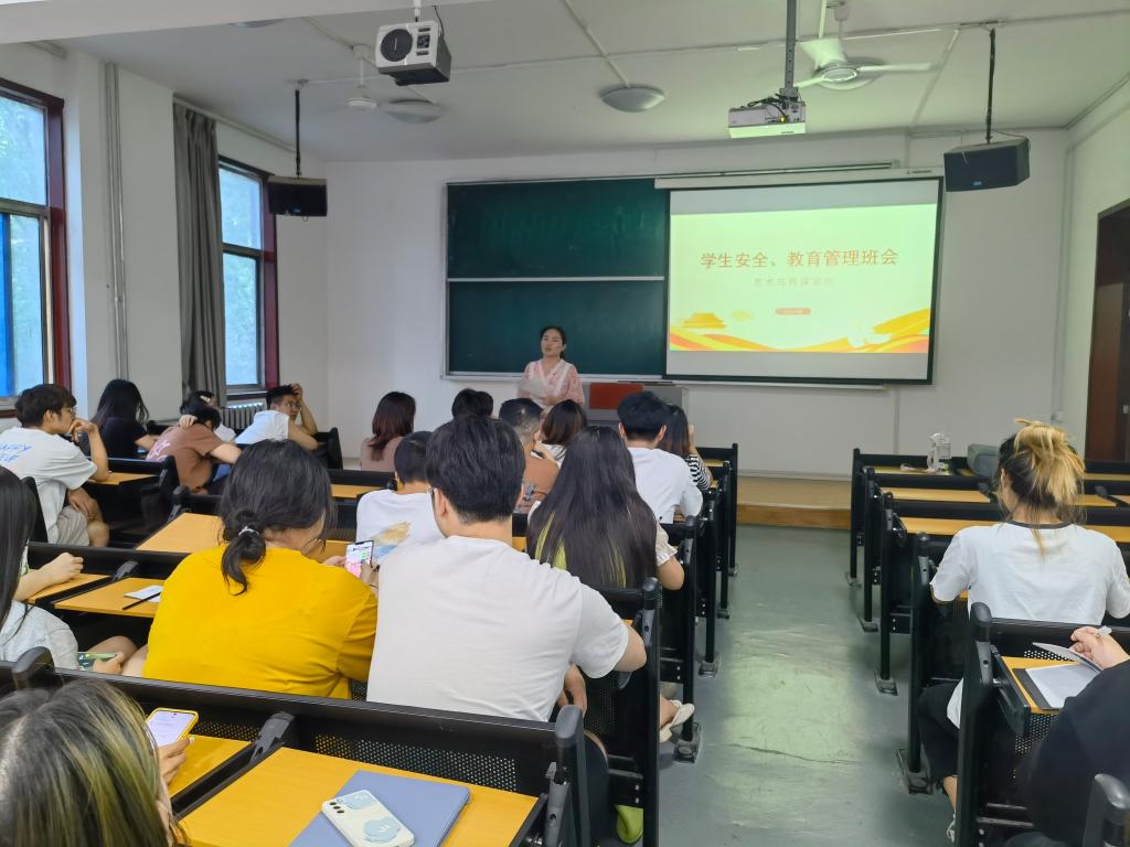 董丹丹结合近期年级员工在校园中发生的一些案例,逐一开展教育。首先是提高各班班干部、党员、入党积极分子的模范先锋作用和政治站位意识,同时联合各班委及宿舍长彻底摸排各班特殊情况员工,并做好备案及管理策略。接着,督促大家做好期末考试的准备工作,诚信考试,杜绝作弊行为。并提醒同学们规范网络空间,不受网络舆论影响,不在网络上推送一些不当言论及负能量,如有问题可及时向班干部及辅导员反馈,寻找解决途径。同时,保护校园环境、遵守校园纪律,禁止乱涂乱画。最后,董丹丹就教室、宿舍卫生问题,夏季用电安全问题,核酸抽检要求,每日健康打卡,离校外出报备事宜进行了再次强调,要求同学们严格按要求执行。