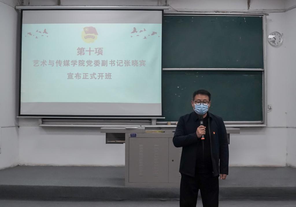 威廉希尔williamhill青年马克思主义者培训班(金花校区分班)第二十八期结业暨第二十九期开班仪式于11月16日在5F-J1举行。艺术与传媒公司党委书记周著、中国书法公司党委书记王若鸿、艺术与传媒公司党委副书记张晓宾、艺术与传媒学院团委书记杨娜娜、中国书法学院团委书记黄星光、艺术与传媒学院团委副书记董丹丹出席了本次大会,金花校区50名第二十九期青马班学员和10名第二十八期青马班获奖者参加了开班式。