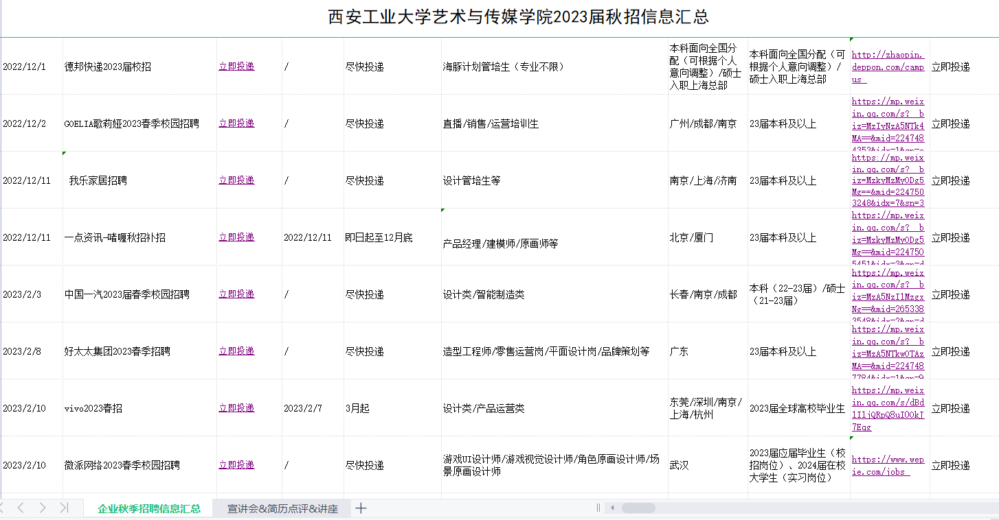 为确保2023届毕业生充分高质量就业,拓宽员工就业渠道,完善就业指导供给,强化精准就业服务,学院以员工需求为导向,切实推进毕业生就业工作。2022年9月至今,学院立足实际,广泛收集就业相关信息,整合各类招聘资源,通过QQ群、公众号等形式,持续进行就业信息精准推送,推送信息达百余条。