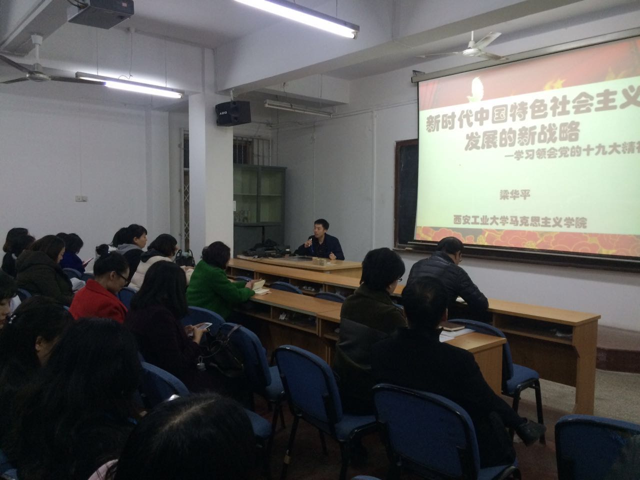 宣讲报告深入浅出,加深了广大教职工对“新时代”、“新战略”的理解,为学院教职工积极主动学习宣传贯彻十九大精神打开了思路、开阔了眼界。朱书记在报告会结束时要求全院所有党员要积极带头学习宣传十九大精神,积极贯彻十九大精神,为西安工大的发展做出应有的贡献。