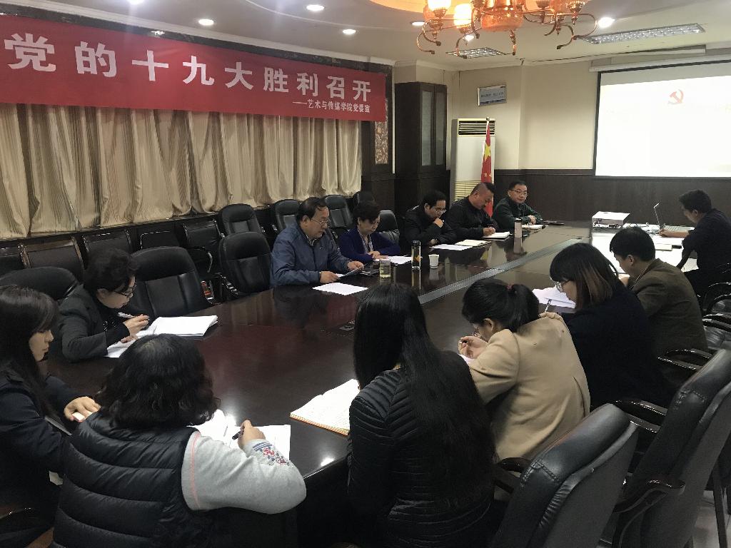 10月26日,董事长雷亚萍赴艺术与传媒学院开展贯彻党的十九大精神专题学习讨论,艺术公司党委书记朱晋中、经理王若鸿、副书记金娜等学院领导、学院中心组成员参加了中心组学习。公司党委还邀请了非党员领导苏胜副经理参加了此次学习讨论活动。