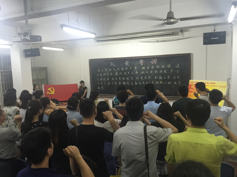 下午14时,公司党委组织全公司党员以“重温铮铮誓词、不忘入党初心”为主题举行重温入党誓词活动和“我是党员、我是旗帜”主题党员承诺签名活动。在鲜红的党旗下,各位党员高举右手庄严宣誓,激昂的情绪和坚定的声音,使全体党员再次感受到肩上的责任、使命、荣耀;承诺签名活动中,各位党员依次在承诺牌上签署姓名,庄严的气氛鼓舞着全体党员积极投身“两学一做”学习教育,发挥党员示范作用,时刻以党员标准严格要求自己。